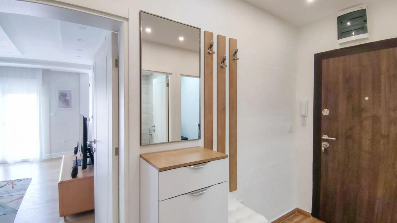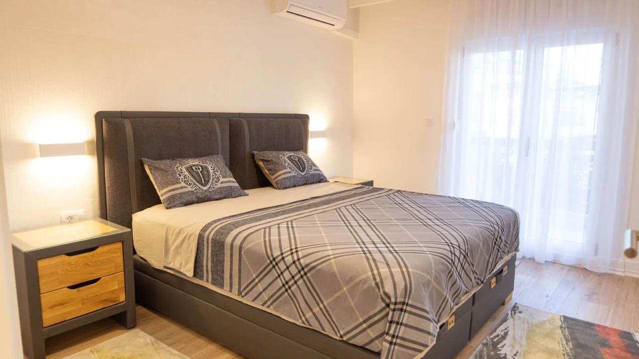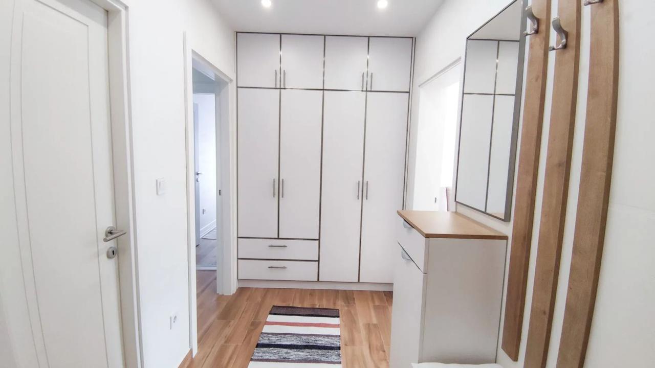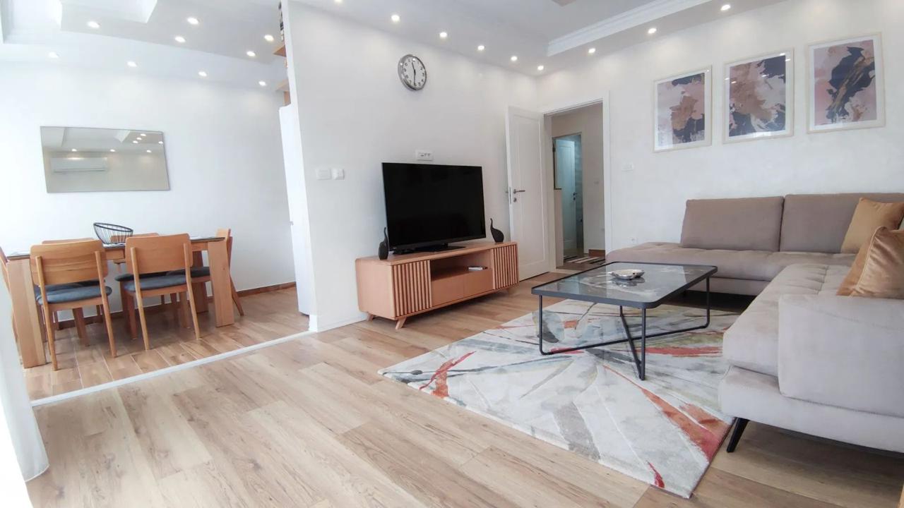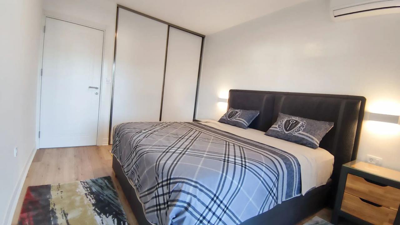 Izdaje se stilski, kompletno komforan dvosoban stan u Podgorici, Trg Bozane Vučinić. Stan je ukupne stambene površine 86 m2. Stan se nalazi na IV spratu u zgradi sa VIII spratova koja posjeduje lift. Orjentisan je istok-sjever, opremljen novim, luksuznim namještajem i tehnikom renomiranih brendova. Struktura: ulazni hodnik, s desne strane su prostrana dnevna soba, trpezarija, kuhinja, balkon sa garniturom za odmor, a sa lijeve strane ulaznog hodnika su vešeraj/ostava, gostinjski toalet, mali hodnik/predsoblje, glavno kupatilo, master spavaća soba, druga spavaća soba, veliki balkon na koji izlaze obje sobe. Uz stan dolazi i pripadajuća pomoćna ostava smještena u hodniku zgrade. Stan posjeduje podno grijanje, kompletno je klimatizovan. Kuhinja je opremljena svim potrebnim malim aparatima i posuđem. Veoma dobro je osvijetljen prirodnom svjetlošću. Postoji mogućnost iznajmljivanja garažnog parking mjesta u susjednoj zgradi.