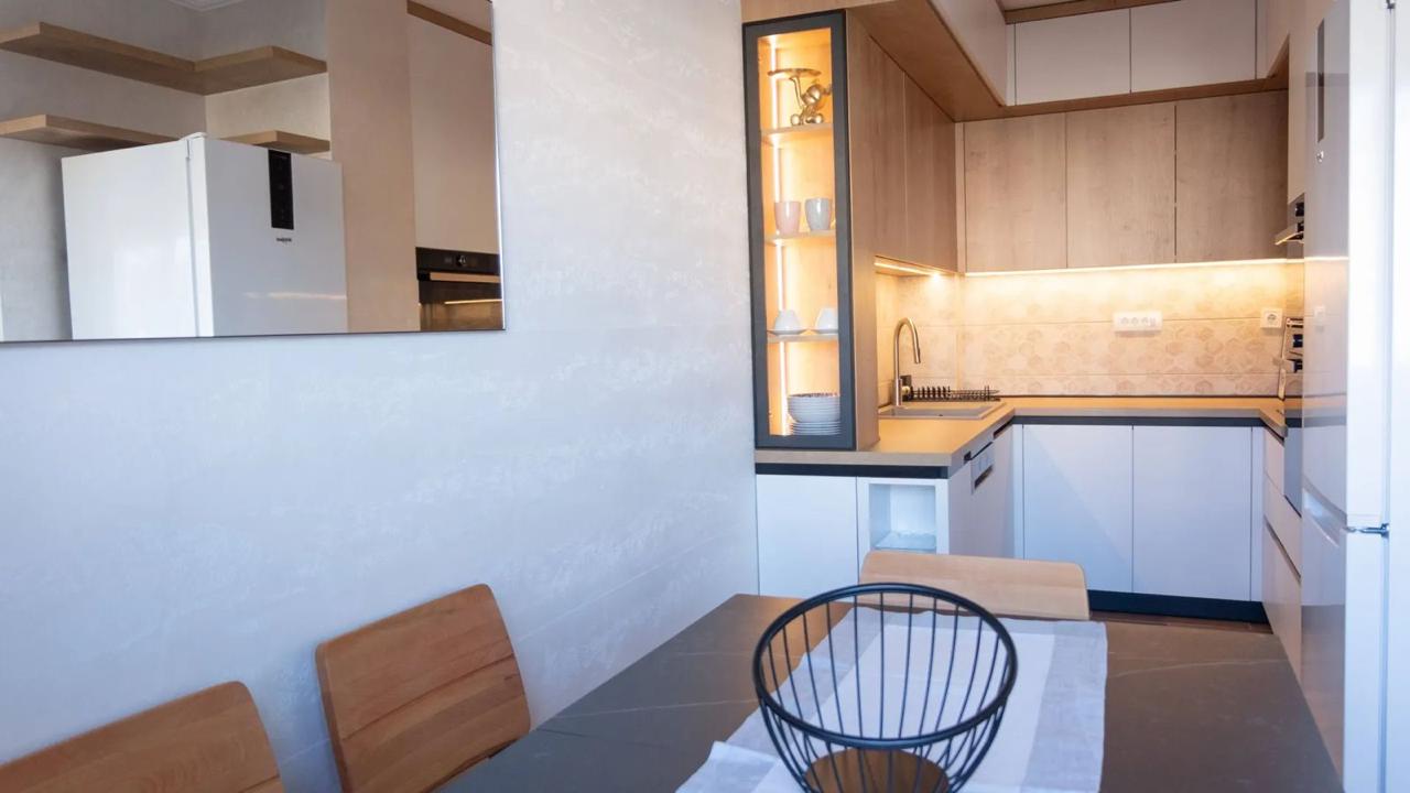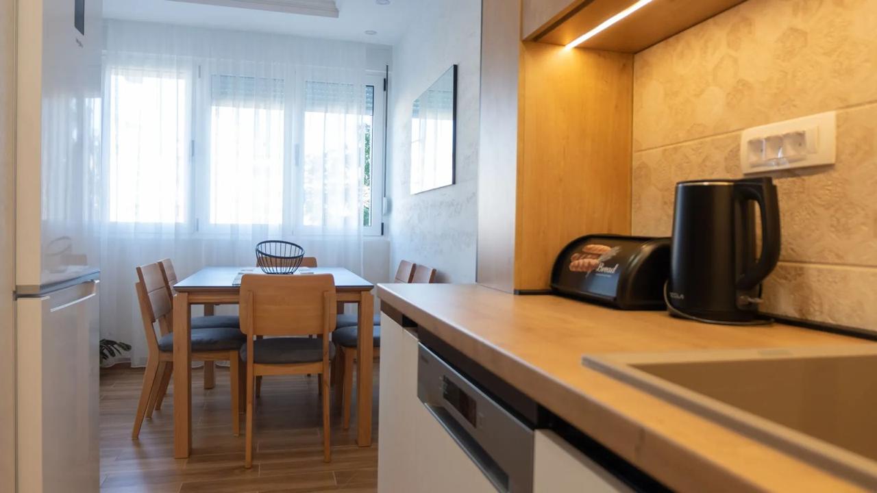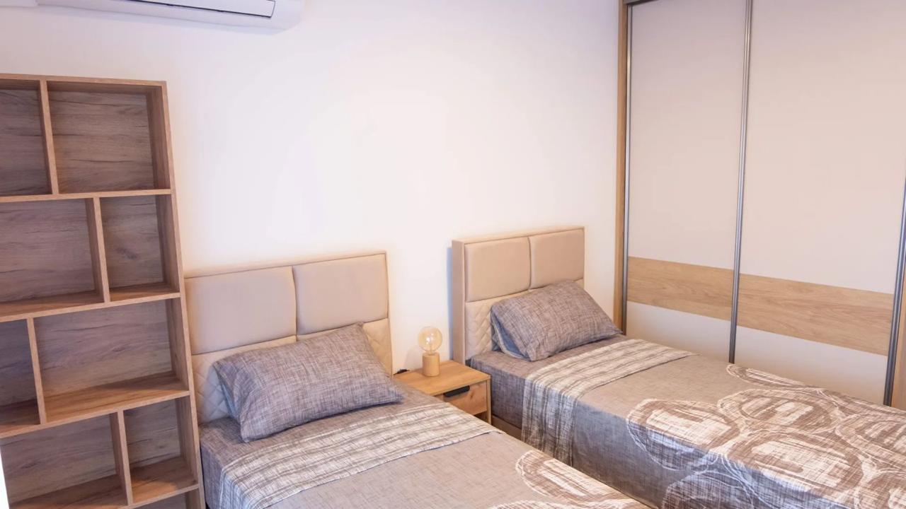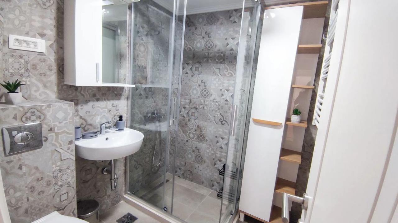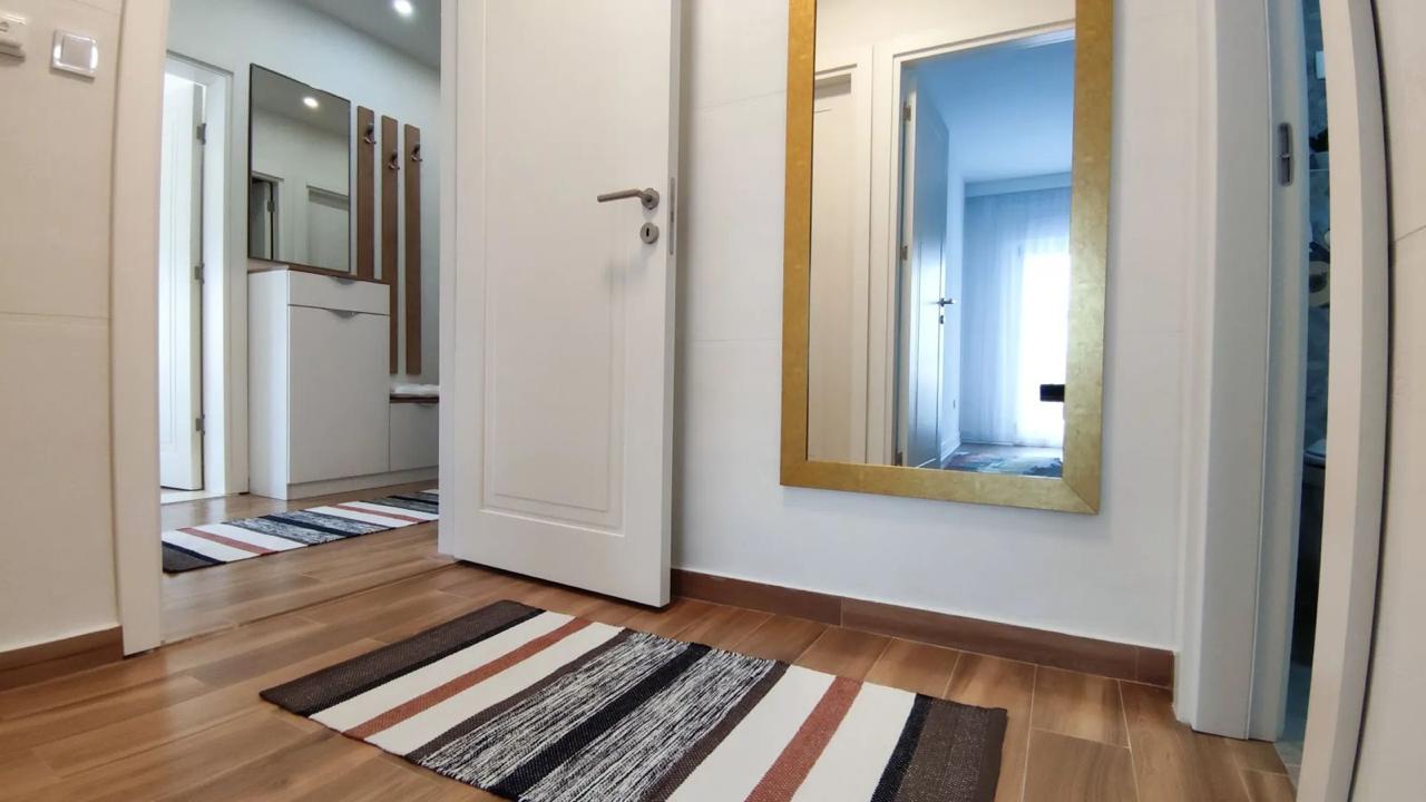 Izdaje se stilski, kompletno komforan dvosoban stan u Podgorici, Trg Bozane Vučinić. Stan je ukupne stambene površine 86 m2. Stan se nalazi na IV spratu u zgradi sa VIII spratova koja posjeduje lift. Orjentisan je istok-sjever, opremljen novim, luksuznim namještajem i tehnikom renomiranih brendova. Struktura: ulazni hodnik, s desne strane su prostrana dnevna soba, trpezarija, kuhinja, balkon sa garniturom za odmor, a sa lijeve strane ulaznog hodnika su vešeraj/ostava, gostinjski toalet, mali hodnik/predsoblje, glavno kupatilo, master spavaća soba, druga spavaća soba, veliki balkon na koji izlaze obje sobe. Uz stan dolazi i pripadajuća pomoćna ostava smještena u hodniku zgrade. Stan posjeduje podno grijanje, kompletno je klimatizovan. Kuhinja je opremljena svim potrebnim malim aparatima i posuđem. Veoma dobro je osvijetljen prirodnom svjetlošću. Postoji mogućnost iznajmljivanja garažnog parking mjesta u susjednoj zgradi.