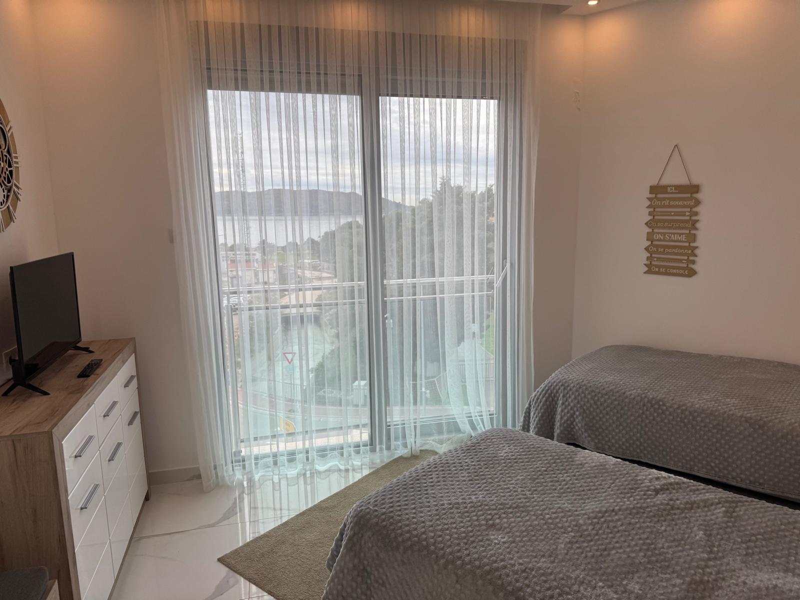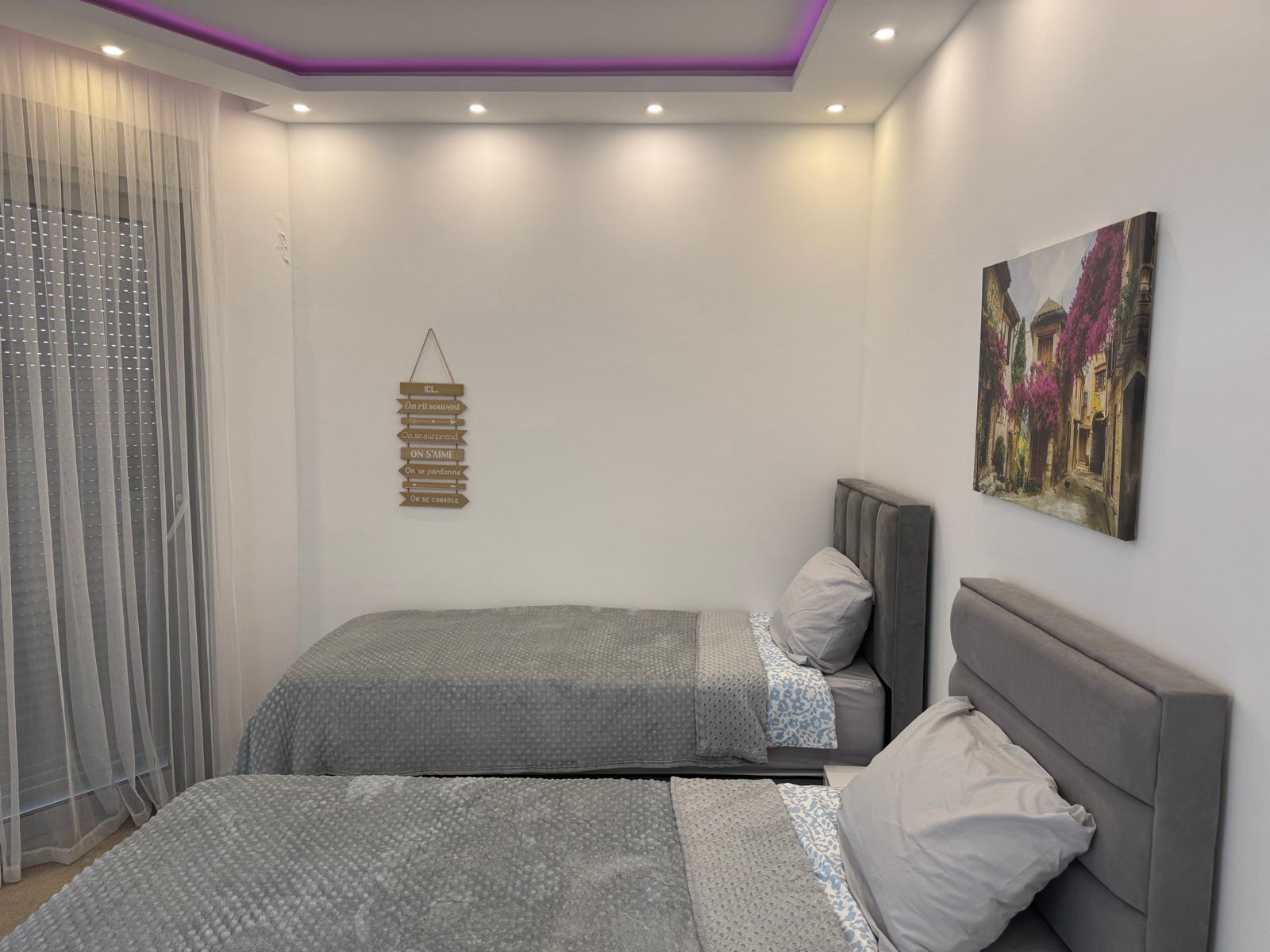 Prodaje se namješten dvosoban stan, Bečići. Stan je ukupne stambene kvadrature 91m2, koji se nalazi na drugom spratu stambene zgrade. Stan se sastoji od dvije spavace sobe, dva kupatila, salona – dnevni boravak sa trpezarijom i kuhinjom, ulazni hodnik i balkona.